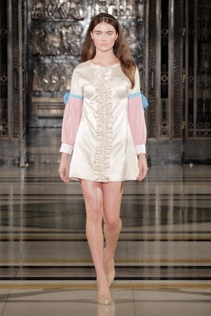 Such a beautiful collection. It was like an ode to Disney princess, but much more modern and higher hem lines. Not only can you see a Disney theme (definitely down to the colour pallet ans use of leaves on sleeves!) i also felt like there was influence from early Miu Miu who perfected the art of silk dresses in pastels with beautifully placed embroidery, lace and bows.